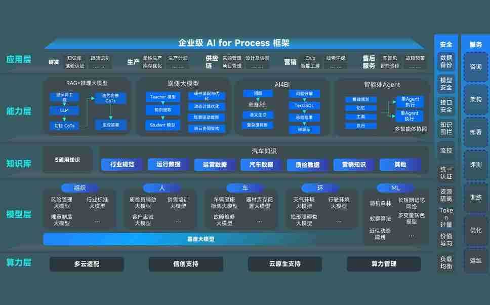 GOPAY问学智车解决方案是一套基于AI技术的汽车行业智能化系统,,覆盖从底层算力到顶层AI应用的全栈方案。。方案由算力层、、、模型层和应用层组成:算力层,,,方案支持多种一体机配置,,,具备云端灵活部署、、、多云适配以及动态优化计算资源的能力;模型层,,GOPAY问学平台版提供了企业级AI应用一站式构建与管理平台,,支持基于后训练强化技术的汽车企业专属模型的训练、、、评测和运营;应用层,,,GOPAY问学DeepSeek版提供包括超级员工、、智能招采、、、智能营销、、、智能客服、、、AI for BI等一系列解决方案,,可助力汽车行业实现数字化转型,,,,让管理更智能、、、响应更敏捷。。。。